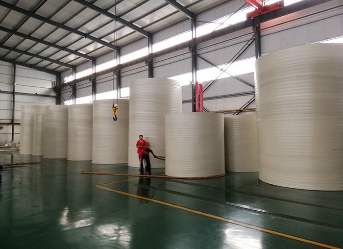 用玻璃钢贴衬修补:目前这种方法是用比较普遍,效果较显着,贴衬玻璃钢用手糊法进行。30立方PP储罐底层涂料和底层贴布都要用环氧是指粘结剂贴衬三层左右,因环氧树脂与橡胶及金属的粘结力很强。面层则根据腐蚀介质特性选择酚醛、环氧、呋喃或聚酯树脂等粘结剂,贴衬三道以上。注意玻璃布逐渐同衬胶层搭接。达到冷固化后,可用红外线灯局部加热起来加速固化。